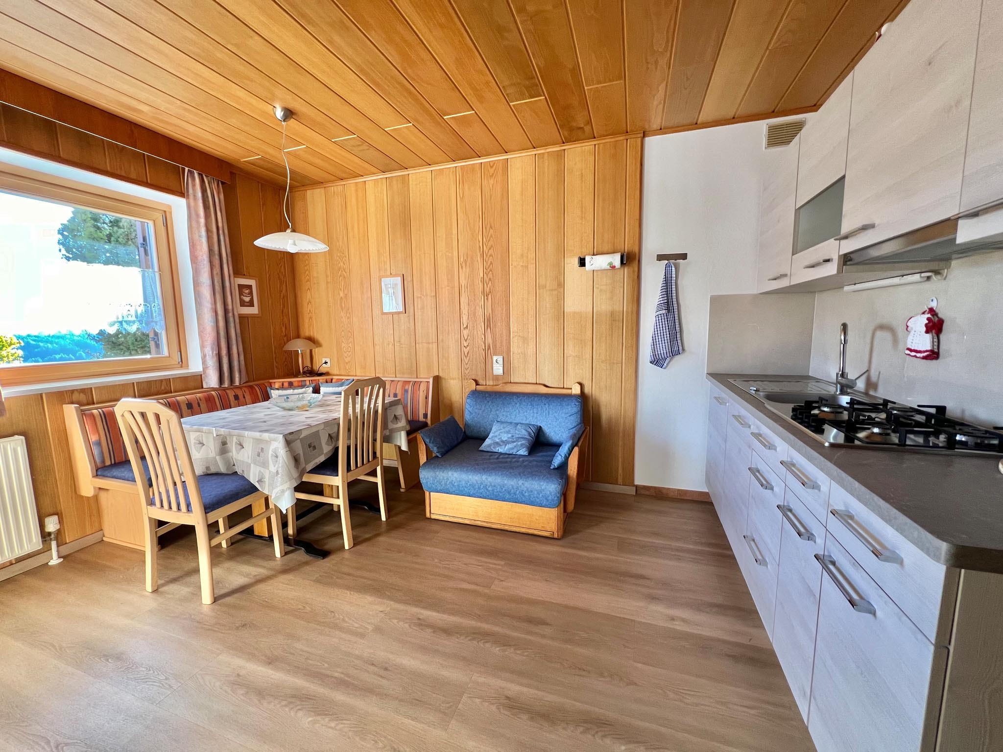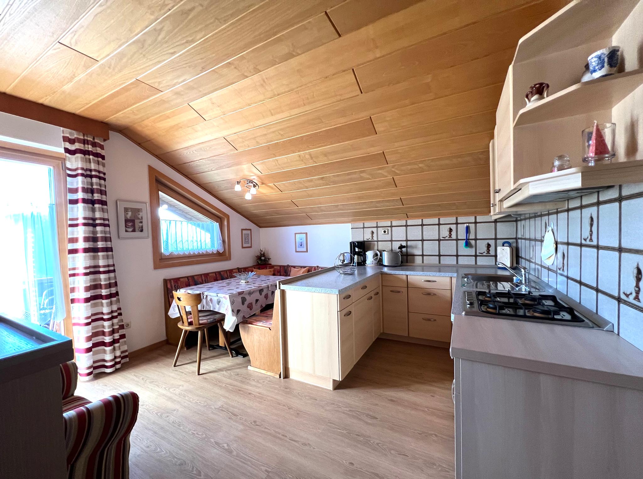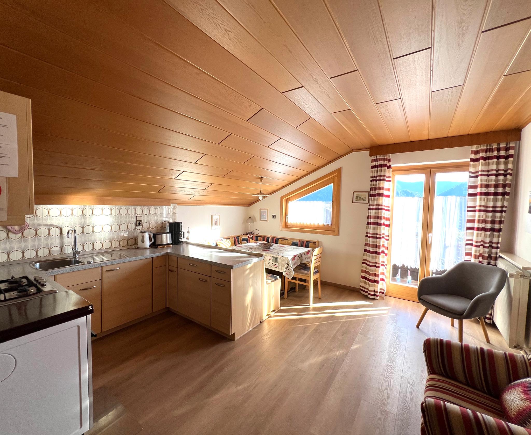 - 1 große Wohnküche mit Essecke und Balkon, mit 4 Kochplatten, elektrische Kaffeemaschine, Toaster, Wasserkocher, SAT-TV, Internet. Sofa sowie Koch- und Essgeschirr für 6 Personen.