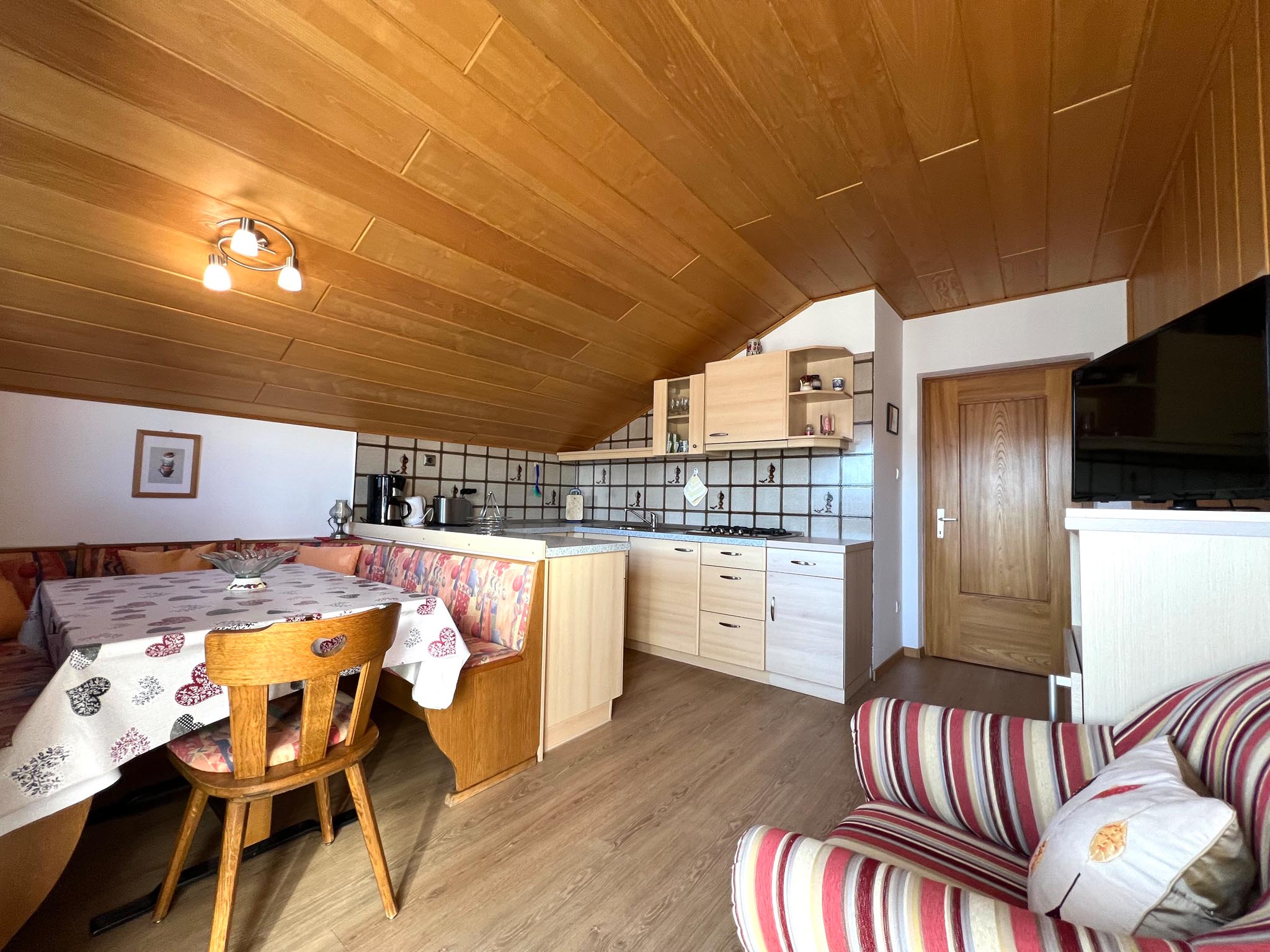 - 1 große Wohnküche mit Balkon, mit Essecke, Backrohr, 4 Kochplatten, elektrische Kaffeemaschine, Toaster, Wasserkocher