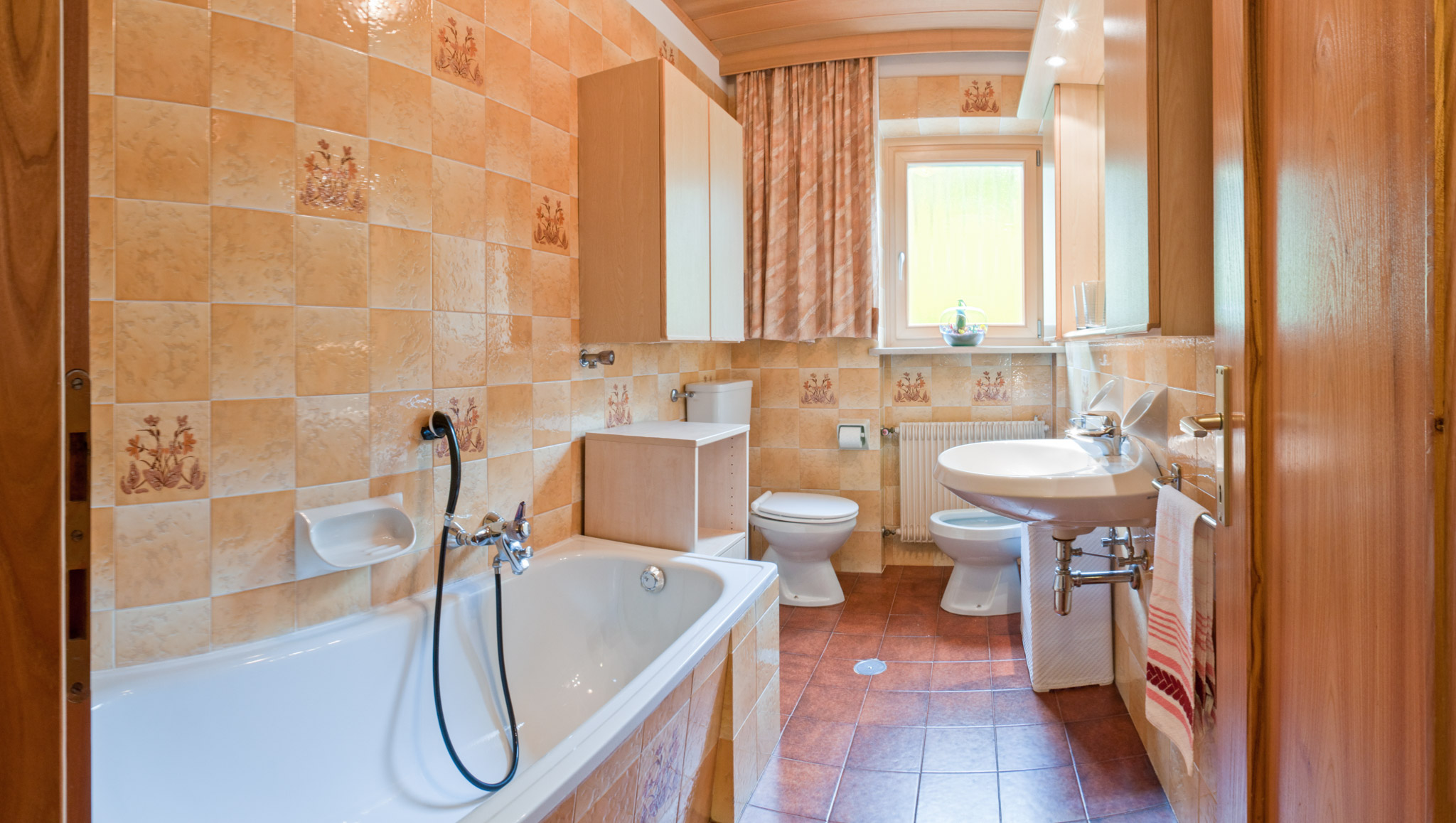 - 1 großes Bad mit Fenster, Badewanne und Bidet